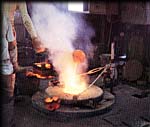 鋳型に油を塗り、もう一方の型つくりをはじめる