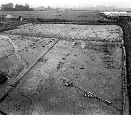 大甕を用いた井戸などが発兄された。塔跡は一辺約12.2mの方形基壇の上に、柱間2.4mの塔が建つ。塔跡の南側では東西方向の築地跡を検出した。出土した瓦の7割を複弁8弁蓮華文軒丸瓦が占める。現在当館常設展で展示中の鴟尾もこの調査での出土品である。調査の結果、一部の瓦は飛鳥時代末にまで遡るものの、塔に使われた瓦は川原寺と同じ時期のものであることがわかった。