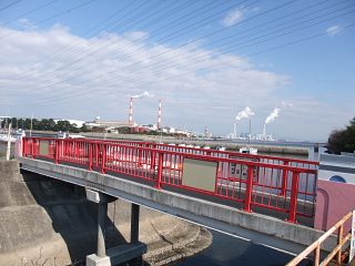 不動山登りり口前に,県道を挟んで赤い祠が岩の上に立っているのが見えます。これが市杵島(いちきしま)神社です。市杵嶋姫(いちきしまひめ) は日本神話では水の神として登場します。ここが木曽川の右岸にあることから祀られているものと考えましたが,この市杵島神社には弁財天が祀られています。 また,神社に隣接して前渡猿尾堤が残されています。これは,本堤防に当たる水の勢いを和らげる働きがある石積みの堤です。この辺りがかつて水害の多かったところで,市杵島神社があるのもわかります。 |