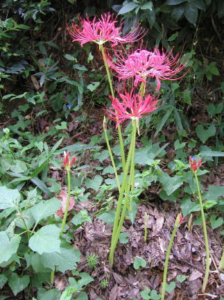 近年秋の田圃風景に欠かせない被写体となった花です。稲作が伝来した頃に中国から伝来したもの。鱗茎にアルカロイドという有毒成分を含み、野ネズミ防除のために畦に植えられるようになった、という話です。