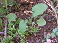 ユキノシタです。 半常緑の多年草ですが、大株の葉は一度枯れ、新芽が出てロゼットの状態で冬越しします。これは、ランナーで増えた新しい株だと思います。 これも我が家の庭ですが、こちらは撤去されません! 差別?(^_^;) |